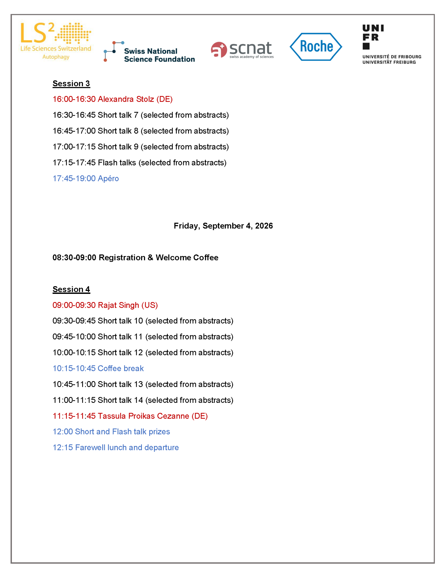 Fribourg, Thursday 3 September 2026 – Friday 4 September 2026