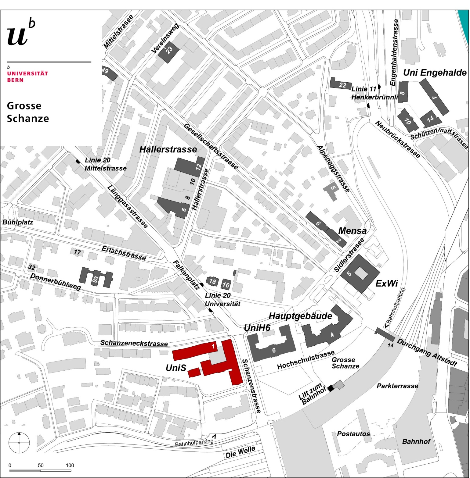 You can reach the venue from Bern`s main train station by walking (7 minutes) or with a bus Nr. 20 direction Länggasse, stop Universität.
